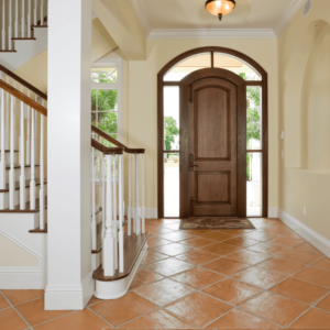 Entryway: Sweep floors, wipe down the door, and place a clean mat.
