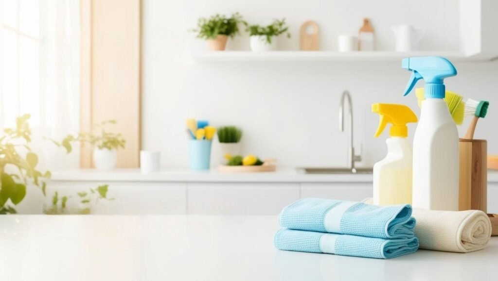 Always clean from top to bottom. Start with ceiling fans, light fixtures, and shelves before moving to furniture and floors. This prevents dust from resettling on surfaces you’ve already cleaned.
